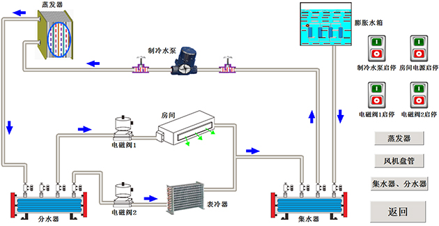 每個(gè)終端處理機(jī)配置制冷系統(tǒng)流程板、控制電路流程板、溫度表及壓力表,可觀測到機(jī)組的全部控制電路。
