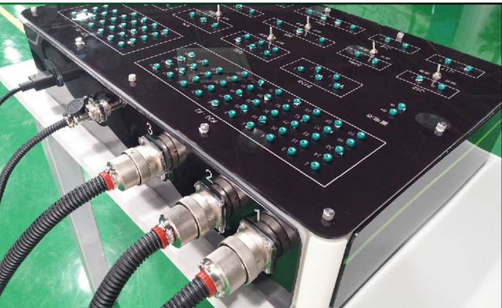4、機械故障設置終端通過更換面板上不同功能的插件和短路跨接線實現斷路、線路虛接、對地短路、對正極短路故障設置,在機械故障設置終端不變的情況下更換不同的連接線束和檢測面板可實現不同系統(tǒng)的實訓操作;
