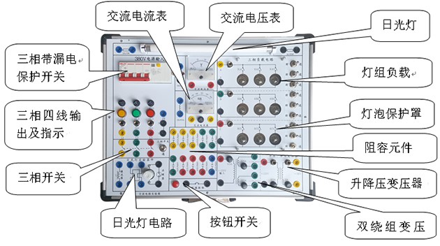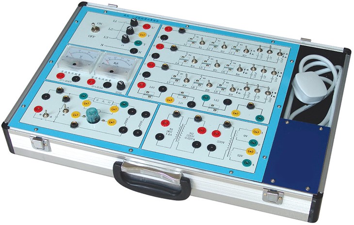 交流電路實驗箱 主要是進(jìn)行"電工學(xué)"及"電路原理"中的強電部分實驗,如單相交流電路、三相電路、日光燈電路實驗。本實驗箱由模塊單元和元件庫相結(jié)合的板面構(gòu)成,全部采用歐洲標(biāo)準(zhǔn)的安全插座和安全實驗導(dǎo)線, 連線方便,接觸可靠,而且壽命長、效率高,有效預(yù)防觸電隱患。實驗面板上印有元件符號及主要參數(shù)便于學(xué)生識別。實驗箱結(jié)構(gòu)緊湊實用直觀,安全可靠,能有效培養(yǎng)學(xué)生的動手能力,維修方便、簡捷。可滿足各類高、中等院校及職業(yè)技術(shù)類院校開設(shè)的電工典型實驗。