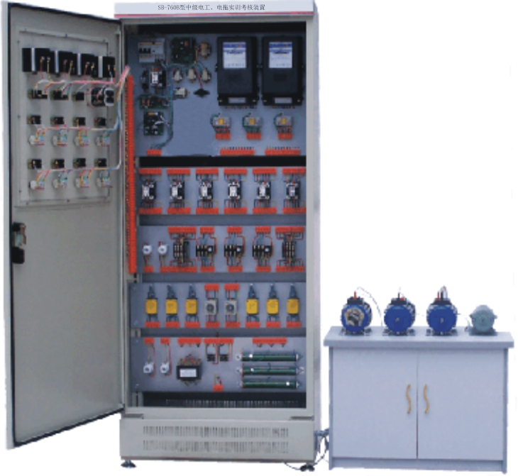 中級電工、電拖實訓考核裝置是按照勞動社會保障部頒發(fā)的“工人技術等級標準”和“職業(yè)技能鑒定規(guī)范”的內容要求,根據(jù)初級電工培訓考核的實際情況而設計的新一代集培訓學習、理論驗證、實際操作能力、考核鑒定于一體的多功能柜式設備。整臺設備以標準的電氣控制柜為主柜,利用柜體的雙面空間,布置電器 及配套實驗器材,能完成初級電工考核鑒定中的電力拖動控制與照明電路的實操項目,該電工、電拖實訓考核裝置堅持理論聯(lián)系實際的原則,突出技能訓練,注重針對性、實用性、科學性,經全國多家職業(yè)技能訓練中心、職校、技校使用證明,該柜體設計合理、實操方便,占地面積少。為延長電器的使用壽命,各電器的接點都與接線端子相連,再讓學生在接線端子上接線,連接電機、電器來完成各項控制實驗,有效降低材料消耗,延長使用壽命。該套設備適用于各勞動職業(yè)技能鑒定部門,同時適應各大、中專、技校、職校初級電工、電拖專業(yè)教學與實訓考核。
