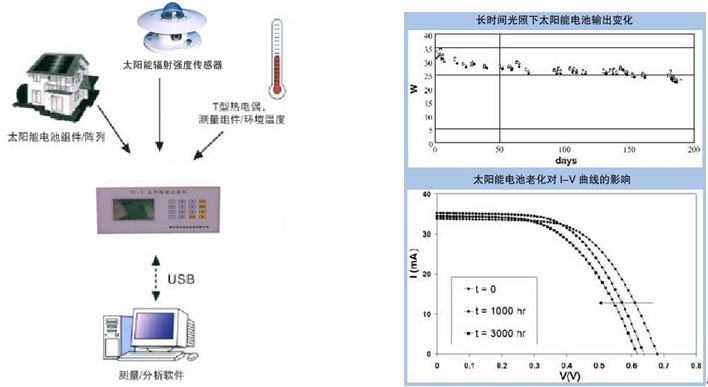 準(zhǔn)確測試光伏方陣和組件在野外條件下的太陽輻射強(qiáng)度,環(huán)境溫度,風(fēng)速,電池組件的溫度,開路電壓、短路電流、最大功率、最大功率點電壓、最大功率點電流和填充因子測算光伏方陣和組件在標(biāo)準(zhǔn)測試條件下(STC)下的開路電壓、短路電流、最大功率、最大功率點電壓、最大功率點電流、填充因子和轉(zhuǎn)換效率