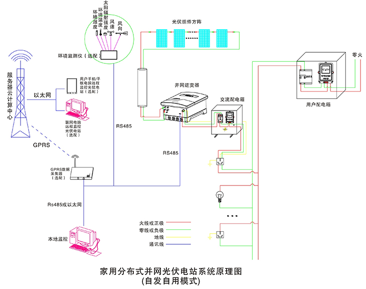 在晴朗的白天,裝在屋頂上的光伏組件發(fā)出的直流電經(jīng)過并網(wǎng)逆變器逆變成與電網(wǎng)同頻率同相位的單相交流電給負(fù)載進(jìn)行供電,在夜晚或陰雨天等太陽光照不足的情況下,系統(tǒng)處于待機狀態(tài),負(fù)載用電全部來自電網(wǎng)。您可以通過系統(tǒng)監(jiān)控軟件來實時查看系統(tǒng)的運行狀態(tài)和故障信息,或者是選配遠(yuǎn)程通訊數(shù)據(jù)采集器,將系統(tǒng)工作數(shù)據(jù)通過GPRS或以太網(wǎng),傳輸?shù)侥氖謾C、平板電腦或任意一臺聯(lián)網(wǎng)的電腦,以便于您遠(yuǎn)程實時掌控電站的信息。
