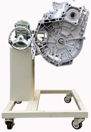 采用減速翻轉(zhuǎn)機構(gòu),可使變速器旋轉(zhuǎn)任意角度,并能任意位置鎖止,便于學(xué)生從不同的角度進(jìn)行拆卸和裝配。