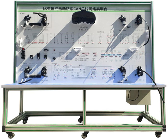 新能源比亞迪車載網(wǎng)絡實訓臺采用比亞迪e5 電動汽車CAN-BUS系統(tǒng)等真實器件制作的實驗實訓臺架,可電動汽車CAN-BUS系統(tǒng)相關的實驗實訓內(nèi)容。適合于各類院校對純電動車CAN總線網(wǎng)絡系統(tǒng)理論和維修實訓的拆裝與維護、結(jié)構(gòu)與原理認知、系統(tǒng)操作、功能動態(tài)演示、故障檢測與診斷教學需要。