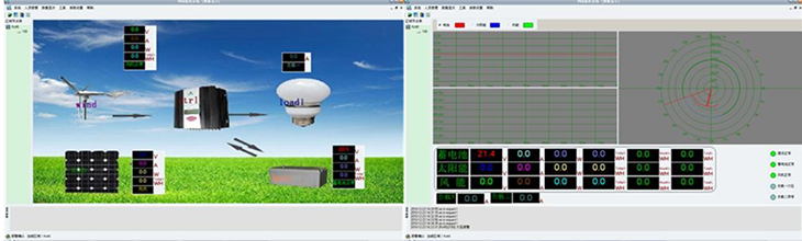 ◆ 顯示內(nèi)容:蓄電池電壓、風(fēng)機電壓、光伏電壓、風(fēng)機電流、光伏電流、風(fēng)機功率、光伏功率,能量模擬圖,當(dāng)前風(fēng)速(米/秒),當(dāng)前風(fēng)向(度),當(dāng)前風(fēng)力資源平估。