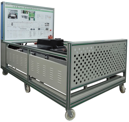 (比亞迪e5 EV300純電動汽車) 鋰動力電池組、電池管理系統(tǒng)BMS、BMS顯示屏(7寸觸摸屏)、維修開關(guān)、輔助蓄電池(12V45AH)、高壓配電箱、漏電傳感器、車載充電機(jī)、國標(biāo)充電插座與充電槍、直流接觸器(包含充電繼電器、總正繼電器、總負(fù)繼電器、預(yù)充繼電器)、急停開關(guān)與電源總開關(guān)、一體化全鋁合金型材搭建的移動臺架(1500×700×1700mm ,帶自鎖腳輪裝置,帶安裝檢測端子的原理面板1448×940mm)、故障考核系統(tǒng)、設(shè)備操作說明書。