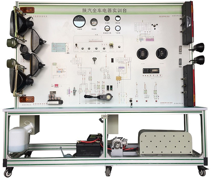 全車電器電路實(shí)訓(xùn)設(shè)備采用陜汽SX2220柴油機(jī)整車電器實(shí)物為基礎(chǔ),充分展示汽車儀表系統(tǒng)、燈光系統(tǒng)、雨刮系統(tǒng)、喇叭系統(tǒng)、發(fā)動(dòng)機(jī)電器系統(tǒng)、起動(dòng)系統(tǒng)和充電系統(tǒng)等汽車電器各系統(tǒng)的組成結(jié)構(gòu)和工作過(guò)程。