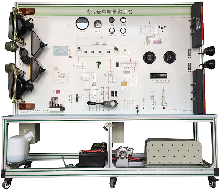 全車電路實(shí)訓(xùn)臺(tái)、該設(shè)備采用陜汽SX2190柴油機(jī)整車電器實(shí)物為基礎(chǔ),充分展示汽車儀表系統(tǒng)、燈光系統(tǒng)、雨刮系統(tǒng)、喇叭系統(tǒng)、發(fā)動(dòng)機(jī)電器系統(tǒng)、起動(dòng)系統(tǒng)和充電系統(tǒng)等汽車電器各系統(tǒng)的組成結(jié)構(gòu)和工作過(guò)程。