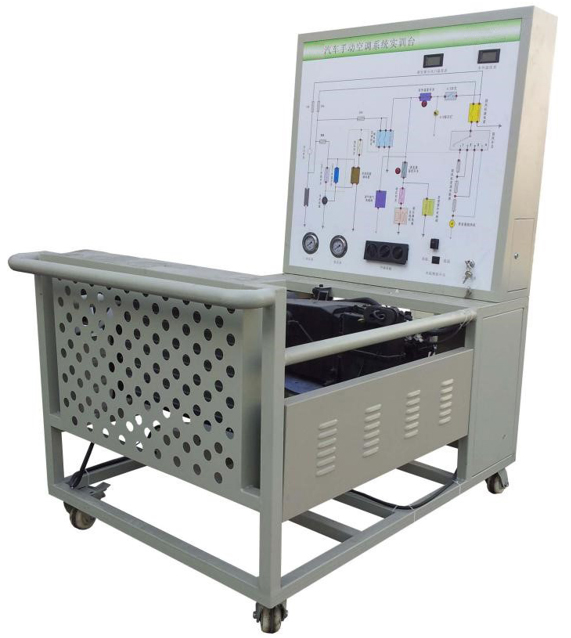 2.由三相電機(jī)做為動(dòng)力源,帶動(dòng)空調(diào)壓縮機(jī)工作。操作空調(diào)控制面板,可真實(shí)演示汽車(chē)手動(dòng)空調(diào)系統(tǒng)的工作過(guò)程以及工作原理。