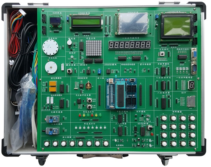 單片機(jī)實(shí)訓(xùn)實(shí)驗(yàn)臺,單片機(jī)技術(shù)實(shí)驗(yàn)箱,單片機(jī)與嵌入式實(shí)驗(yàn)室,萬能單片機(jī)實(shí)驗(yàn)開發(fā)系統(tǒng)、單片機(jī)開發(fā)應(yīng)用技術(shù)綜合實(shí)驗(yàn)裝置是電子與通信、自動(dòng)化信息工程技術(shù)、計(jì)算機(jī)基礎(chǔ)課實(shí)訓(xùn)室等課程實(shí)驗(yàn)實(shí)訓(xùn)。單片機(jī)實(shí)驗(yàn)室是專為電子、通信和自動(dòng)化等專業(yè)而設(shè)立,單片機(jī)實(shí)驗(yàn)室設(shè)備適應(yīng)《微機(jī)原理與接口技術(shù)》《單片機(jī)原理與應(yīng)用》課程的需要,滿足了正常實(shí)驗(yàn)教學(xué)的同時(shí),設(shè)立了開放性實(shí)驗(yàn)室功能,充分調(diào)動(dòng)了學(xué)生學(xué)習(xí)的積極性,方便了學(xué)生和老師實(shí)驗(yàn)程序的編制和調(diào)試。單片機(jī)實(shí)訓(xùn)設(shè)備主要承擔(dān)《單片機(jī)原理》、《微機(jī)接口與技術(shù)》等相關(guān)課程的實(shí)驗(yàn)、課程設(shè)計(jì)及畢業(yè)設(shè)計(jì)。