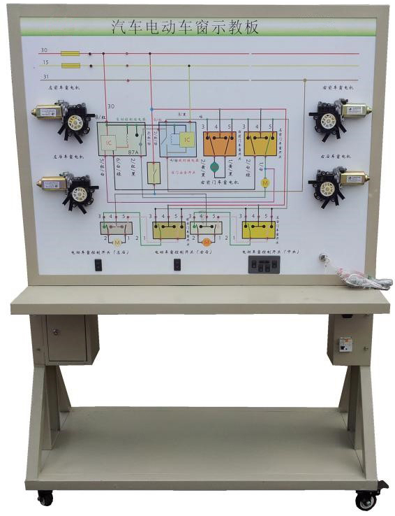 汽車電器構(gòu)造維修實(shí)訓(xùn)設(shè)備,電控門窗中控門鎖實(shí)驗(yàn)臺(tái)、儀表照明系統(tǒng)實(shí)訓(xùn)臺(tái)、安全氣囊示教板、整車接線臺(tái)架等實(shí)訓(xùn)設(shè)備。能對(duì)汽車電器的有關(guān)系統(tǒng)進(jìn)行結(jié)構(gòu)認(rèn)識(shí)、原理分析、故障診斷等各方面的教學(xué),整車接線臺(tái)架還可使學(xué)生自己動(dòng)手完成整車電路的連接,提高了學(xué)生動(dòng)手能力。服務(wù)專業(yè):汽車運(yùn)用與維修專業(yè)。服務(wù)的課程:汽車電器設(shè)備、汽車檢測(cè)技術(shù)等有關(guān)課程的實(shí)訓(xùn)教學(xué)。
