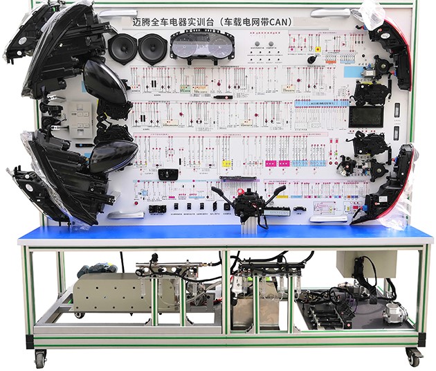 汽車電氣設(shè)備實(shí)訓(xùn)室。汽車電器設(shè)備實(shí)訓(xùn)室包含有汽車燈光系統(tǒng)、車載網(wǎng)絡(luò)系統(tǒng)、全車電器系統(tǒng)、汽車啟動系統(tǒng)、汽車空調(diào)系統(tǒng)、全車線路試驗(yàn)臺、等實(shí)訓(xùn)教學(xué)設(shè)備。該實(shí)訓(xùn)室可以承擔(dān)《汽車構(gòu)造》、《汽車電器設(shè)備》、《汽車電控系統(tǒng)》、《汽車檢測與診斷》等課程的實(shí)踐教學(xué)任務(wù)?梢杂糜谘芯、分析全車電器系統(tǒng)、燈光系統(tǒng)、儀表系統(tǒng)等電器設(shè)備的電路及功能。利用這些系統(tǒng)進(jìn)行實(shí)踐教學(xué),使學(xué)生熟悉汽車電器的結(jié)構(gòu)和工作原理,掌握各個系統(tǒng)的基本組成電路,掌握主要電路的檢測方法和系統(tǒng)的故障特征,從而具有一定的檢測和調(diào)校能力。