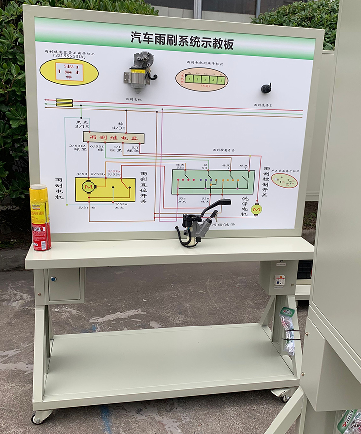 2.示教板面板采用耐創(chuàng)擊、耐污染、防火、防潮的高級(jí)鋁塑板,表面經(jīng)特殊工藝噴涂底漆處理;學(xué)校學(xué)員可直觀對(duì)照電路圖和實(shí)物,認(rèn)識(shí)和分析汽車雨刮和清洗系統(tǒng)的工作原理。
