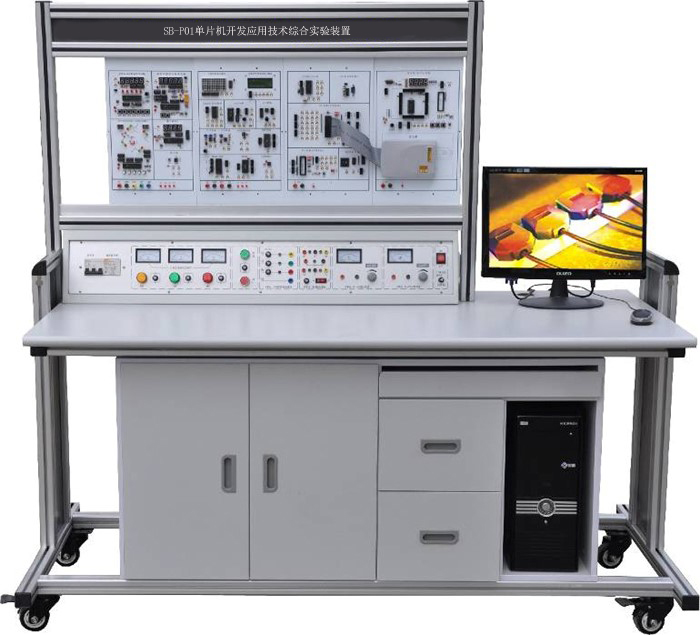 單片機(jī)開發(fā)應(yīng)用技術(shù)綜合實(shí)驗(yàn)裝置由控制屏、實(shí)驗(yàn)掛箱、實(shí)驗(yàn)桌組成,通過本實(shí)驗(yàn)臺可完成單片機(jī)的接口擴(kuò)展、數(shù)據(jù)采集、數(shù)據(jù)顯示、鍵盤控制、定時(shí)器、打印機(jī)接口等實(shí)驗(yàn),配備有仿真器。