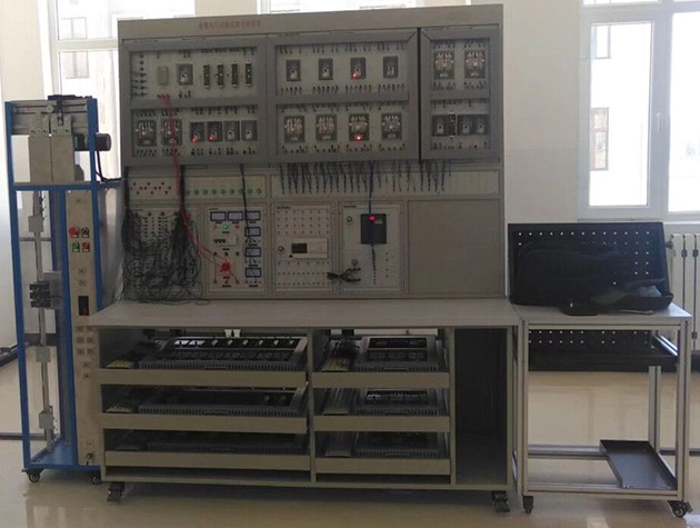 1、模型電梯設(shè)4層4站,由模擬井道架、轎廂、對(duì)重、曳引機(jī)、電梯門(mén)、門(mén)電機(jī)、各層站外呼盒及主要安全裝置組成,固定設(shè)置在實(shí)驗(yàn)臺(tái)側(cè)面。模擬井道架內(nèi)需配置用于檢測(cè)轎廂位置的樓層感應(yīng)器、平層感應(yīng)器(與實(shí)際電梯相似)等,其接線端子引至模擬井道架的插接孔上。井道架采用金屬材料為主體支架,有機(jī)玻璃封閉!镌O(shè)備必須采用臺(tái)式結(jié)構(gòu),設(shè)置活動(dòng)式抽屜電氣板,每層抽屜板均設(shè)置有公共接線板(總線型接線方式,總線連接點(diǎn)數(shù)必須達(dá)到120點(diǎn)以上),抽屜電氣板之間采用工業(yè)坦克鏈連接,公共抽屜板連線采用真實(shí)電梯多芯隨行電纜。