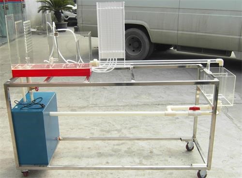 主要配置:儲水箱; 上水管;溢流管;整流柵;溢流板;溢流箱;畢托管;差壓計;閥門 測壓計;調節(jié)閥;回水箱;計量箱;回水管;移動式不銹鋼實驗臺。