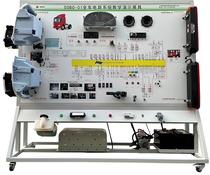全車電路板試教板教學(xué)設(shè)備采用 全新豪沃1167 柴油機(jī)整車電器實(shí)物為基礎(chǔ),充分展示汽車儀表系統(tǒng)、燈光系統(tǒng)、雨刮系統(tǒng)、喇叭系統(tǒng)、發(fā)動(dòng)機(jī)電器系統(tǒng)、起動(dòng)系統(tǒng)和充電系統(tǒng)等汽車電器各系統(tǒng)的組成結(jié)構(gòu)和工作過程。