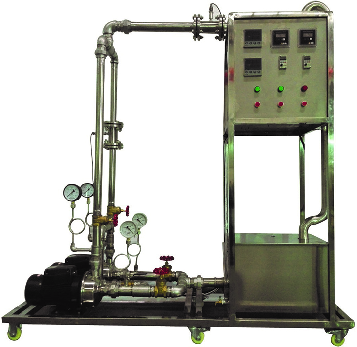 單相矢量變頻器,規(guī)格:(0-50)Hz。 指針式壓力表:表盤直徑Φ100mm 測量范圍0-0.6MPa,精度1.5級。 指針式真空表:表盤直徑Φ100mm 測量范圍-0.1-0MPa,精度1.5級。 功率變送器、智能功率數(shù)字顯示儀。 光電傳感器:數(shù)顯,測量范圍0~2999rpm,精度1rpm,轉(zhuǎn)速檢測機(jī)構(gòu)。 宇電AI702M溫度數(shù)字顯示儀。 宇電AI702M流量數(shù)字顯示儀。 DN40渦輪流量計:1~20m3/h,4-20mA遠(yuǎn)傳輸出,流量檢測機(jī)構(gòu)。 不銹鋼離心泵:功率750W,最大流量7.2m3/h;2臺。 水箱:304不銹鋼材質(zhì),容積100L,帶貯水排空底閥,管路循環(huán)回水與泵吸入口間隔板設(shè)計。 管路:304衛(wèi)生級不銹鋼材質(zhì),采用不銹鋼快裝活接與管路連接,總出口閘閥;管道法蘭連接渦輪流量計。 電器:接觸器、開關(guān)、漏電保護(hù)空氣開關(guān)。 304不銹鋼儀表柜:測控、電器設(shè)備在實(shí)驗(yàn)架上。 304不銹鋼材質(zhì)框架1800*600*1900mm(長×寬×高),帶腳輪及禁錮腳。 |