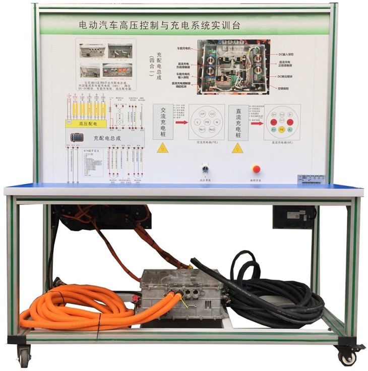 國標(biāo)充電槍與充電座、(北汽EV160純電動(dòng)汽車)高壓配電箱(帶各類高壓繼電器)、漏電傳感器模塊、絕緣傳感器模塊、安全維修塞模塊、漏電模擬操作單元、高壓安全系統(tǒng)操作單元、操作控制臺(tái)、訓(xùn)練控制按鈕、直流接觸器(包含充電繼電器、總正繼電器、總負(fù)繼電器、預(yù)充繼電器)、一體化全鋁合金型材搭建的移動(dòng)臺(tái)架(1500×700×1700mm 帶自鎖腳輪裝置,帶安裝檢測(cè)端子的原理面板,面板1448×940mm)、設(shè)備操作說明書。
