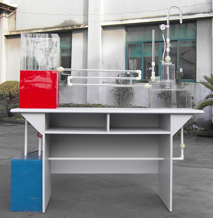 4、主要配置:移動式不銹鋼實驗臺、循環(huán)水箱、恒壓水箱、測壓計、水擊儀