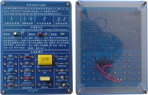 認(rèn)知檢測(cè)區(qū):提供色環(huán)電容、普通瓷片電容、高壓瓷片電容、滌綸電容、CBB電容、云母電容、直插式鉭電容、獨(dú)石電容、電解電容、微調(diào)電容、CBB61電機(jī)啟動(dòng)電容、CBB20軸向無(wú)感聚酯膜電容、安規(guī)電容等若干典型通用電容;同時(shí)還按照封裝提供0603及0805貼片電容、貼片鋁電解電容、貼片鉭電容等若干貼片電容。
