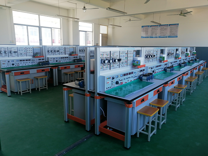 電工電子電拖PLC綜合實(shí)訓(xùn)考核裝置"教學(xué)做"電工一體化教室以電氣運(yùn)行與控制專業(yè)必備的電氣設(shè)備安裝、操作、維護(hù)與應(yīng)用崗位能力為重點(diǎn),以照明線路、電動機(jī)繼電控制線路和常用機(jī)床電氣控制技能為目標(biāo),成為集教學(xué)、培訓(xùn)、服務(wù)和學(xué)生創(chuàng)新活動于一體的高水平綜合性實(shí)踐教學(xué)基地。