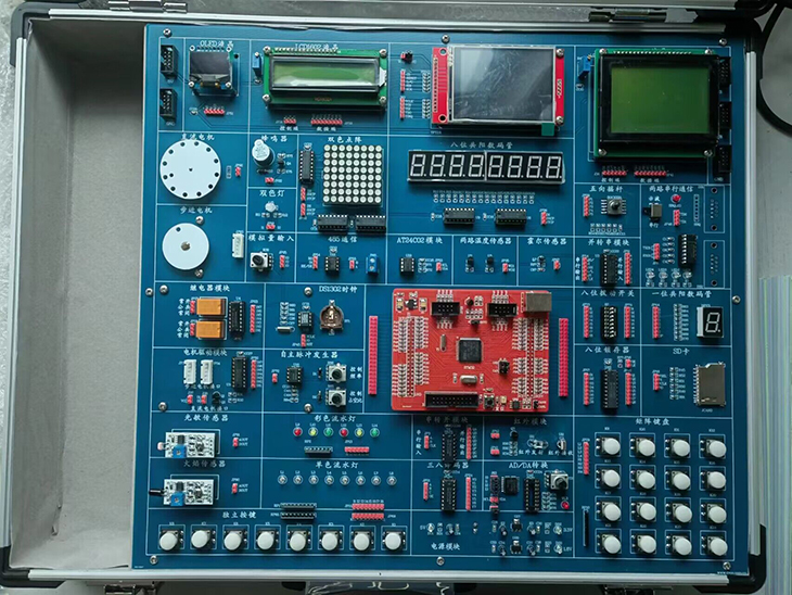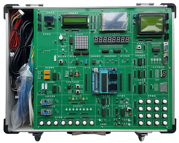 單片機(jī)實(shí)訓(xùn)實(shí)驗(yàn)臺,單片機(jī)技術(shù)實(shí)驗(yàn)箱,單片機(jī)與嵌入式實(shí)驗(yàn)室,萬能單片機(jī)實(shí)驗(yàn)開發(fā)系統(tǒng)、單片機(jī)開發(fā)應(yīng)用技術(shù)綜合實(shí)驗(yàn)裝置是電子與通信、自動(dòng)化信息工程技術(shù)、計(jì)算機(jī)基礎(chǔ)課實(shí)訓(xùn)室等課程實(shí)驗(yàn)實(shí)訓(xùn)。單片機(jī)實(shí)驗(yàn)室是專為電子、通信和自動(dòng)化等專業(yè)而設(shè)立,單片機(jī)實(shí)驗(yàn)室設(shè)備適應(yīng)《微機(jī)原理與接口技術(shù)》《單片機(jī)原理與應(yīng)用》課程的需要,滿足了正常實(shí)驗(yàn)教學(xué)的同時(shí),設(shè)立了開放性實(shí)驗(yàn)室功能,充分調(diào)動(dòng)了學(xué)生學(xué)習(xí)的積極性,方便了學(xué)生和老師實(shí)驗(yàn)程序的編制和調(diào)試。單片機(jī)實(shí)訓(xùn)設(shè)備主要承擔(dān)《單片機(jī)原理》、《微機(jī)接口與技術(shù)》等相關(guān)課程的實(shí)驗(yàn)、課程設(shè)計(jì)及畢業(yè)設(shè)計(jì)。