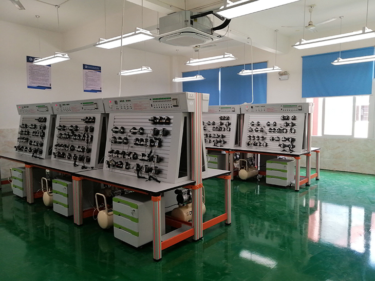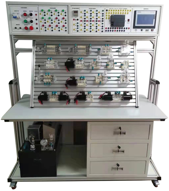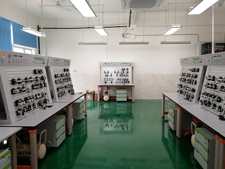 液壓與氣動(dòng)技術(shù)實(shí)驗(yàn)室設(shè)備、透明液壓實(shí)驗(yàn)臺(tái)、氣動(dòng)實(shí)驗(yàn)臺(tái)、液壓元件拆裝實(shí)訓(xùn)臺(tái)、透明液壓傳動(dòng)演示實(shí)驗(yàn)臺(tái)、液壓綜合測(cè)試實(shí)驗(yàn)臺(tái)、智能液壓綜合實(shí)驗(yàn)臺(tái)、機(jī)電液綜合實(shí)驗(yàn)臺(tái)、雙面氣動(dòng)傳動(dòng)實(shí)驗(yàn)臺(tái)、液壓氣動(dòng)元件陳列柜、液壓挖掘機(jī)實(shí)驗(yàn)臺(tái)、液壓起重機(jī)實(shí)驗(yàn)臺(tái)、液壓裝載機(jī)實(shí)驗(yàn)臺(tái)、透明液壓推土機(jī)實(shí)訓(xùn)臺(tái)、液壓叉車控制教學(xué)實(shí)驗(yàn)臺(tái)主要承擔(dān)機(jī)電類相關(guān)專業(yè)《液壓與氣動(dòng)技術(shù)》課程的專業(yè)實(shí)驗(yàn)任務(wù)。能提供包括液壓泵和控制元件結(jié)構(gòu)拆裝與分析實(shí)驗(yàn)、系統(tǒng)回路控制實(shí)驗(yàn)、系統(tǒng)性能實(shí)驗(yàn)和氣動(dòng)技術(shù)實(shí)驗(yàn)在內(nèi)的不同類型的實(shí)驗(yàn)。液壓與氣動(dòng)實(shí)驗(yàn)室所開設(shè)的實(shí)驗(yàn)和液壓(或氣動(dòng))行業(yè)中的液壓系統(tǒng)(或氣動(dòng)系統(tǒng))的設(shè)計(jì)、連接調(diào)試、維護(hù)等緊密相關(guān),通過機(jī)-電-液一體化綜合控制實(shí)驗(yàn),學(xué)生可系統(tǒng)地學(xué)習(xí)PLC程序設(shè)計(jì)與調(diào)試、液壓回路的設(shè)計(jì)與調(diào)試,并且通過碩博軟件使相關(guān)知識(shí)有機(jī)地結(jié)合在一起,實(shí)現(xiàn)對(duì)硬件的動(dòng)作,從而提高各門課程的綜合應(yīng)用能力。