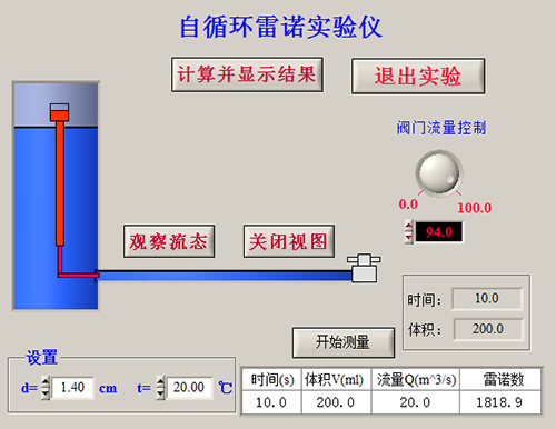 仿真演示軟件;能讓學生在電腦上更直觀地觀看模擬動態(tài)實驗,比如可以做成動畫軟件。移動式不銹鋼實驗臺、有機玻璃整流穩(wěn)壓水箱、雷諾管、顏料盒、顏料針管、計量箱、PVC板水箱、防腐潛水泵、循環(huán)管閥、7寸觸摸顯示屏、流量數顯裝置、控制箱、溫度傳感器DS18B20。